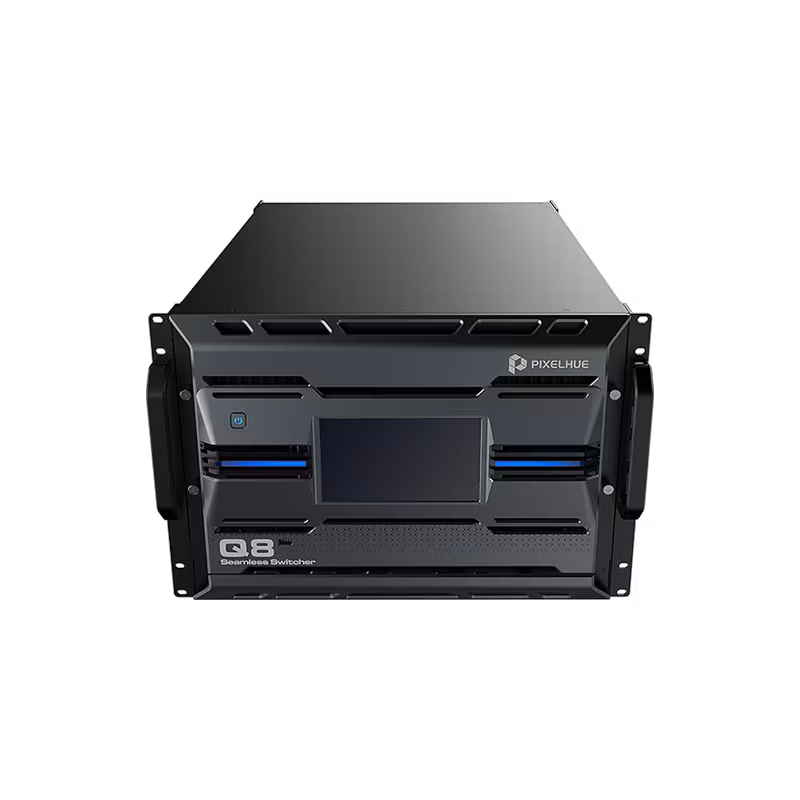Pixelhue Q8 is a high-performance modular seamless switcher and presentation processor designed for large-scale live productions, broadcast environments, and massive LED display systems.